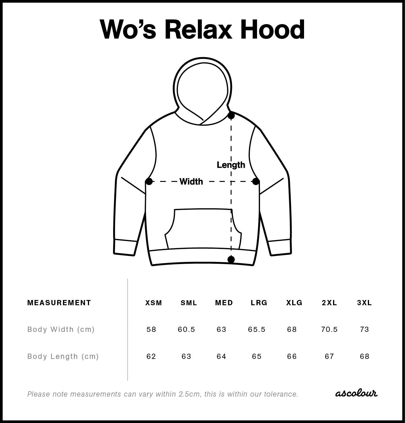 Body Width 58 60.5 63 65.5 68 70.5 73